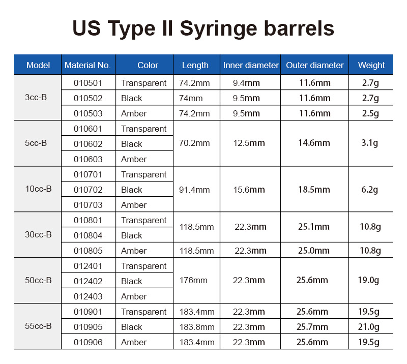 2. American dispensing syringes can be divided into 3cc-300cc according to the specifications;
