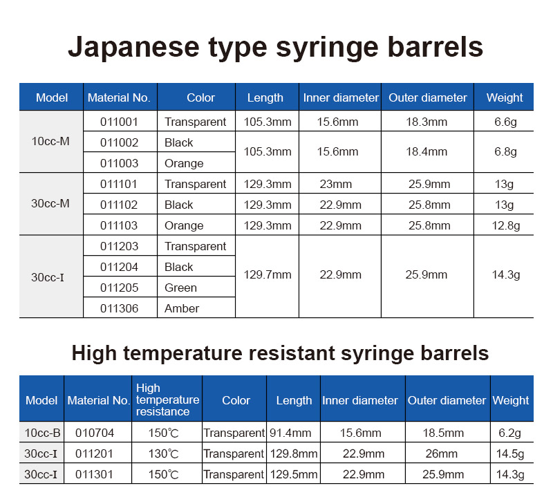 Japan IEI series Syringe cartridges barrels 10ML 30ML cartridges for industrial glue Dispensing Components